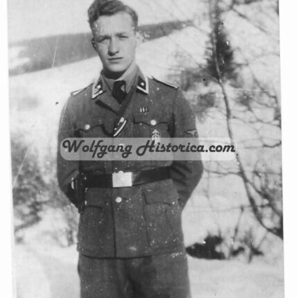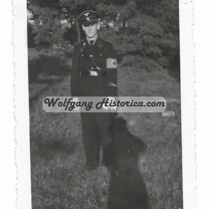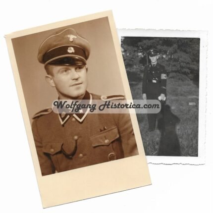 €155,00Interesting Waffen-SS Portrait of a Member of a “Totenkopf” unit, serving with the SS-Totenkopf-Standarte “Brandenburg” (as seen on the smaller photograph, which depict him with the Brandenburg Cufftitle). He took part in the annexiation of the Sudetenland (as seen wearing the Prague Ribbon Bar) and likely went on to serve in the SS-Division “Totenkopf” after the “Brandenburg” units came back to Germany in 1939 (after taking part in the Poland Campaign, connected to the Einsatzgruppe III in the area of the 8. Armee), a large group of personnel was incooperated into the SS-Totenkopf-Infanterie-Regiment 2 of the SS-Totenkopf-Division.