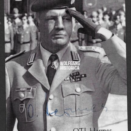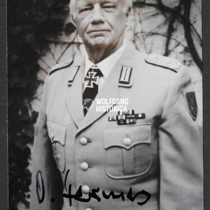 Hermes stands out as one of the youngest Knight’s Cross recipients of the Wehrmacht, having earned the high award as just a Gefreiter at age 18. His autograph is sought after for its rarity and for the remarkable circumstances of his Ritterkreuz award.