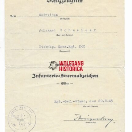 2x Award Docs: ISA & VWA – Grenadier-Regiment 240 (106. Infanterie-Division)