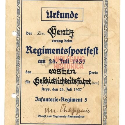 Regimentssportfest Award Certificate – Infanterie-Regiment 5 (Signed by Friedrich-Wilhelm von Chappuis!)