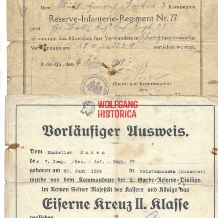 Reserve-Infanterie-Regiment 77 – EK2 & VWA Document Set (Flandern u. Artois)