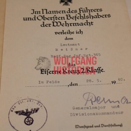 Eisernes Kreuz 2. Klasse Award Doc (May 1940) – KIA 1942