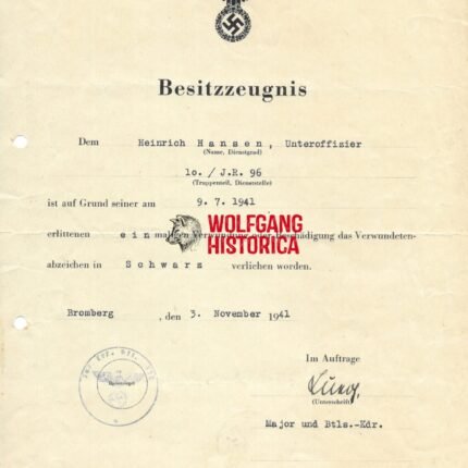 Wound Badge in Black Award Doc: Infanterie-Regiment 96 (32. Infanterie-Division)