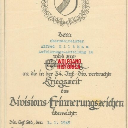 5x Award Docs: A.R. 36 & Aufklärungs-Abteilung 34 (34. Infanterie-Division) (Italy)