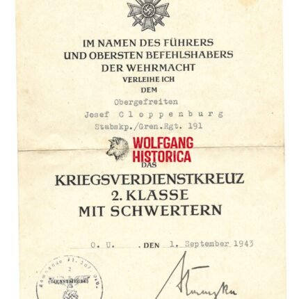 KVK2X Award Doc: Grenadier-Regiment 191 (71. Infanterie-Division)