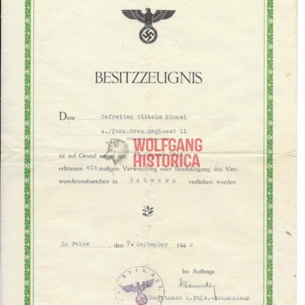 Wehrpass – Kavallerie-Schützen-Regiment 11 (9.Pz.Div.) – WIA (6x Awards)