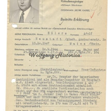 GdR Membership Application of Adolf Eilers – Grenadier-Regiment 184 (RK)