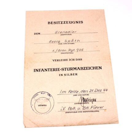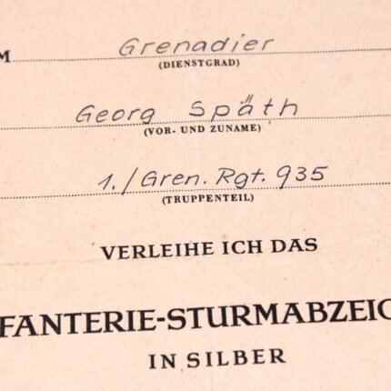 Infantry Assault Badge Doc – Gren.Rgt. 935 (245.Inf.Div.) (Tilburg, Breda, Saar)