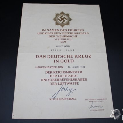 German Cross in Gold Award Doc – Aufklärungsgruppe 12 (later earned RK!)