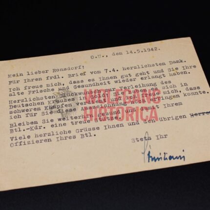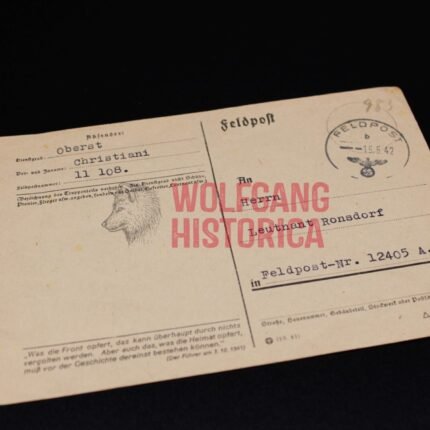 Feldpostkarte Oberst Christiani (DKIG) to another DKIG-bearer of Inf.Rgt.508 (292.Inf.Div.)