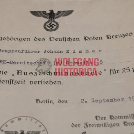 DRK “Auszeichnungsborte” for 25 years of service (!) Award doc