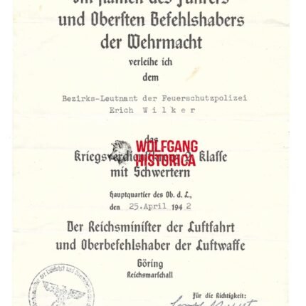 KVK2X Award Doc: Bezirks-Leutnant der Feuerschützpolizei