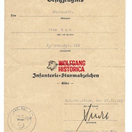 Infanterie-Sturmabzeichen in Silber Award Doc: Grenadier-Regiment 236 (69. Infanterie-Division)