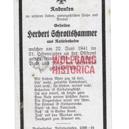 Death Card: KIA June 22, 1941 at Lemberg (Inf.Rgt.486, 262.Inf.Div.)