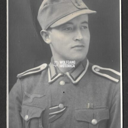 Studioportrait Wehrmacht Soldier wearing Feldmütze Awards (IAB, VWA)