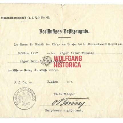 Eisernes Kreuz 2. Klasse (1914) Award Doc: Jäger-Bataillon 12