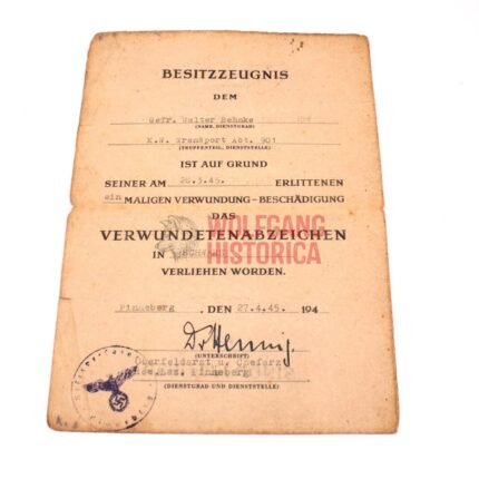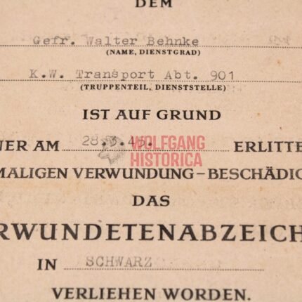 Wound Badge in Black Award Doc: Kraftwagen-Abt. 901 (Wounded March ’45!)