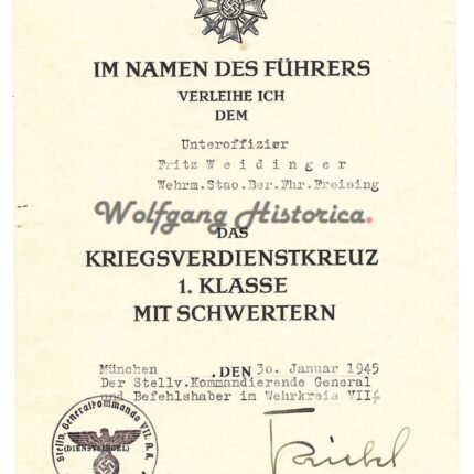 KVK1 Award Document – München (Signed by Karl Kriebel, active against 20 July Plotters)