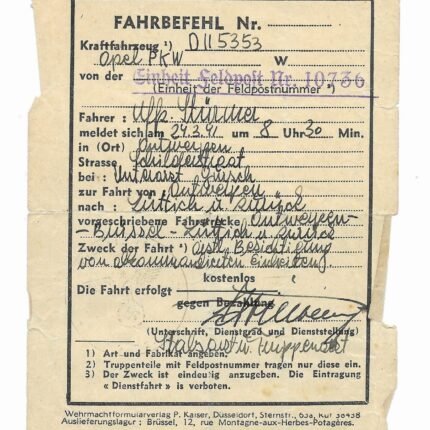 Wehrmacht Driving Permit Antwerpen to Luik
