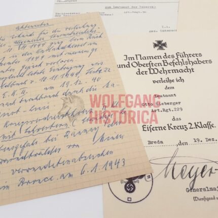 2x Award Docs: Iron Cross 2nd Class (Westfront 1940) & KVK2 for Forestry Service as Forstmeister