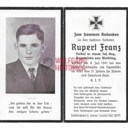 Death Card: KIA July 8, 1941 at Lipowitschi (Schtz.Rgt.64, 17.Pz.Div.)