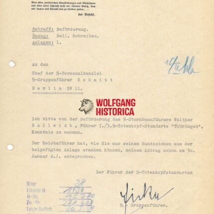 Theodor Eicke signed document about the promotion of Walther Bellwidt