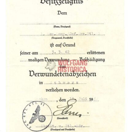 Wound Badge in Black Award Doc: Inf.Ers.Btl.61