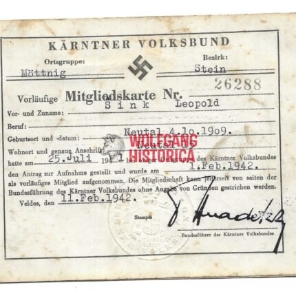Kärtner Volksbund Mitgliedskarte – 1942