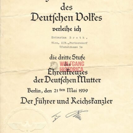Mutterkreuz in Bronze (Mother’s Cross) Award Document – Wien