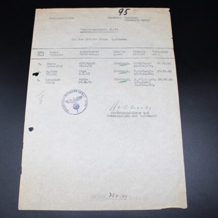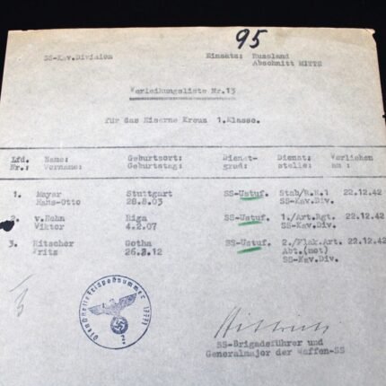 EK1 Awardlist of the SS-Kavallerie-Division – Wilhelm Bittrich Signed!