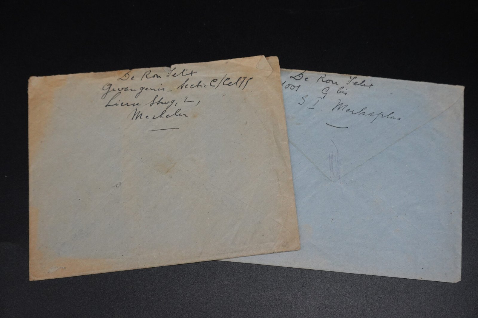 Original 2x Letters & Covers of Major Felix de Ron, who was a Commander in the Vlaamse Wacht (Flemish Guard), the letters were written in jail as a prisoner.