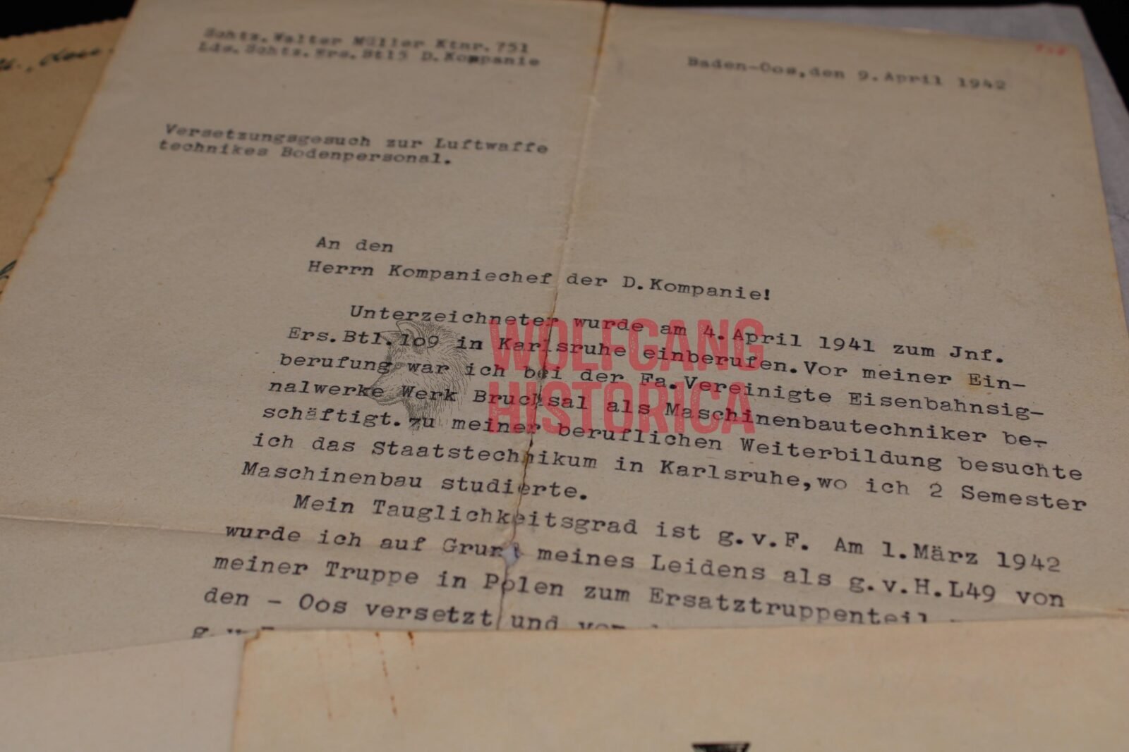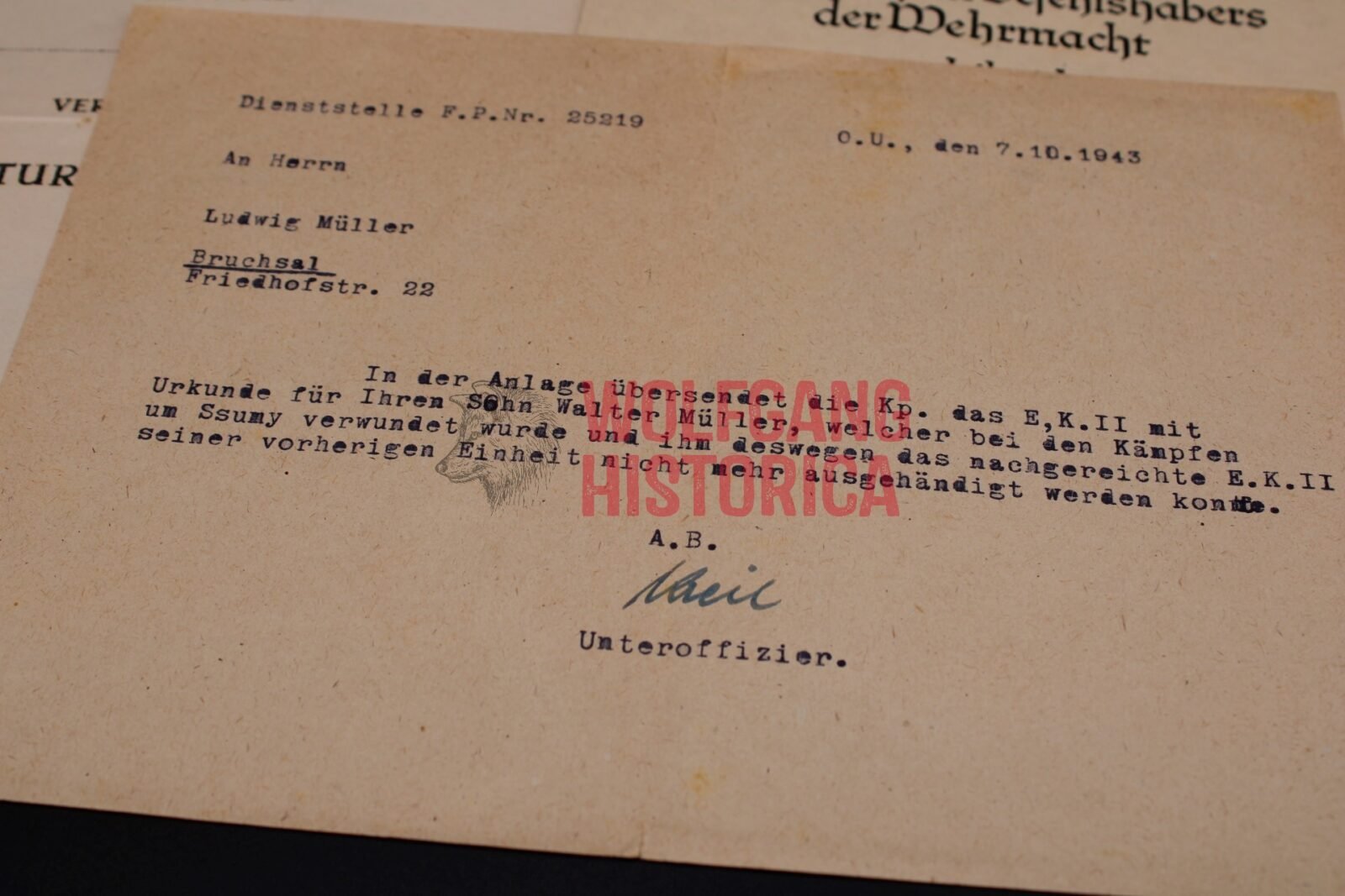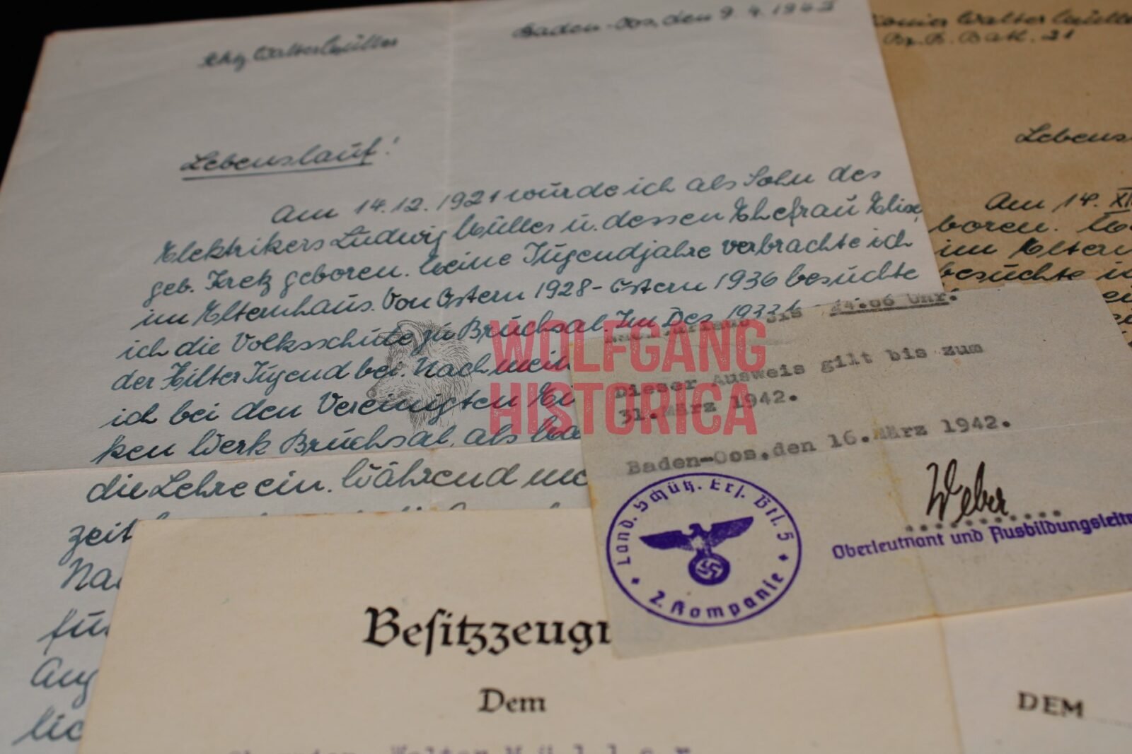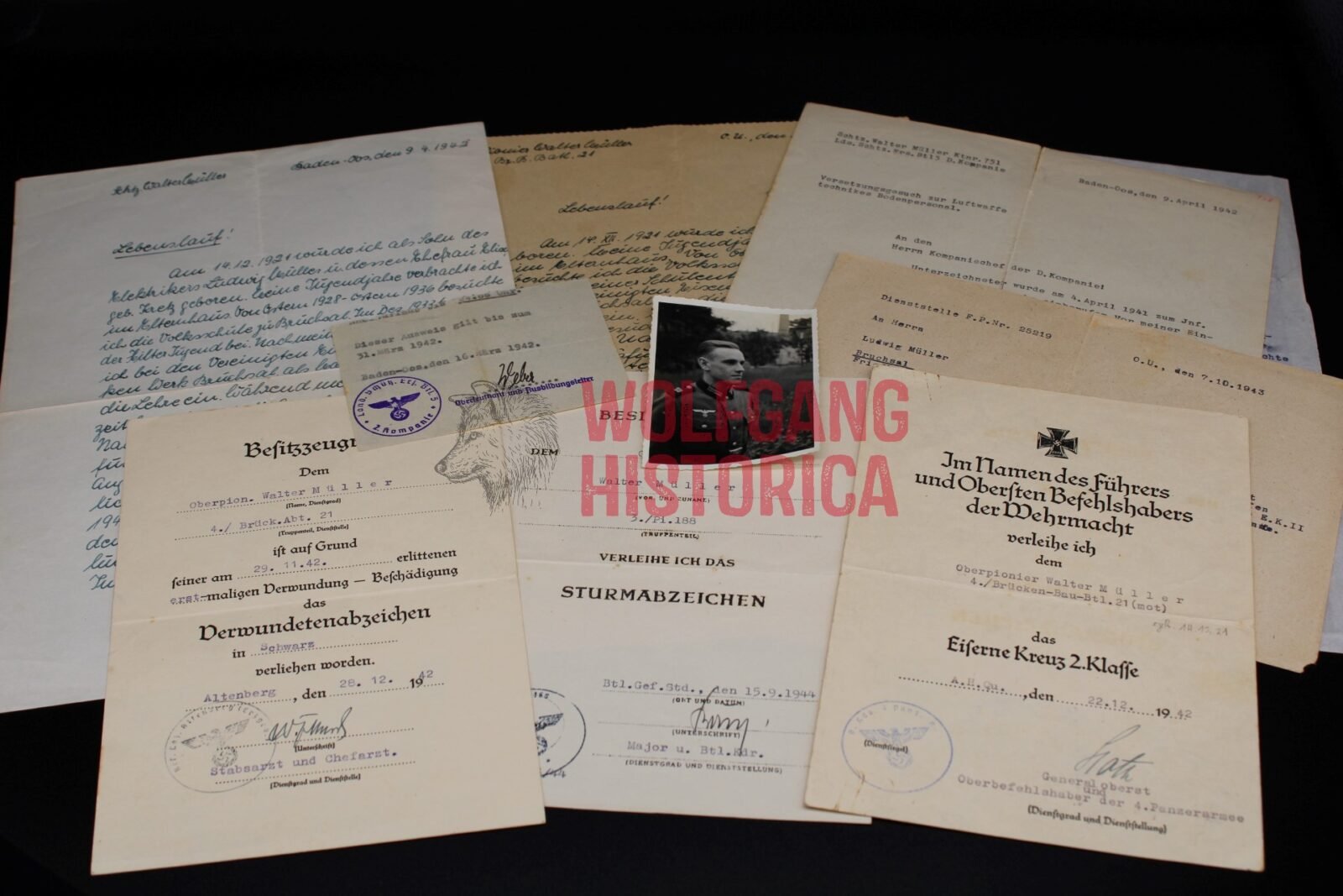 Set of 3x award documents, photograph and few other documents of Walter Müller. One of the award documents was scarcely signed by Generaloberst Hermann Hoth (!) (Ritterkreuz mit Eichenlaub und Schwerter).