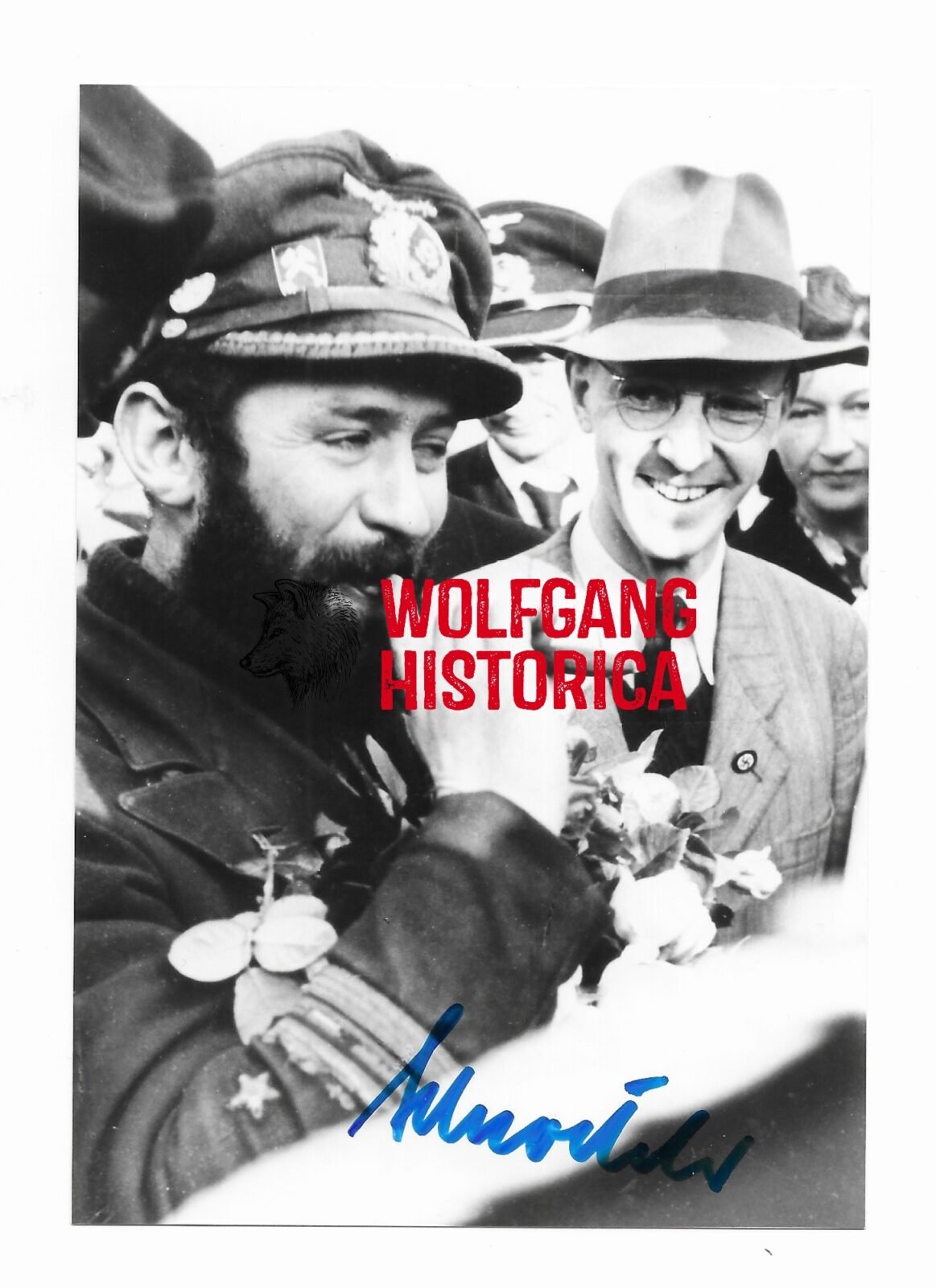 Original Postwar Signature on a Postwar Photo of Heinrich Schroeteler. Käpitanleutnant Heinrich Schroeteler (10.12.1915 in Essen-Katernberg † 19.01.2000 in Bochum) earned the Ritterkreuz des Eisernen Kreuzes on May 2, 1945 as Kapitänleutnant und Kommandant of Uboot “U-1023”.