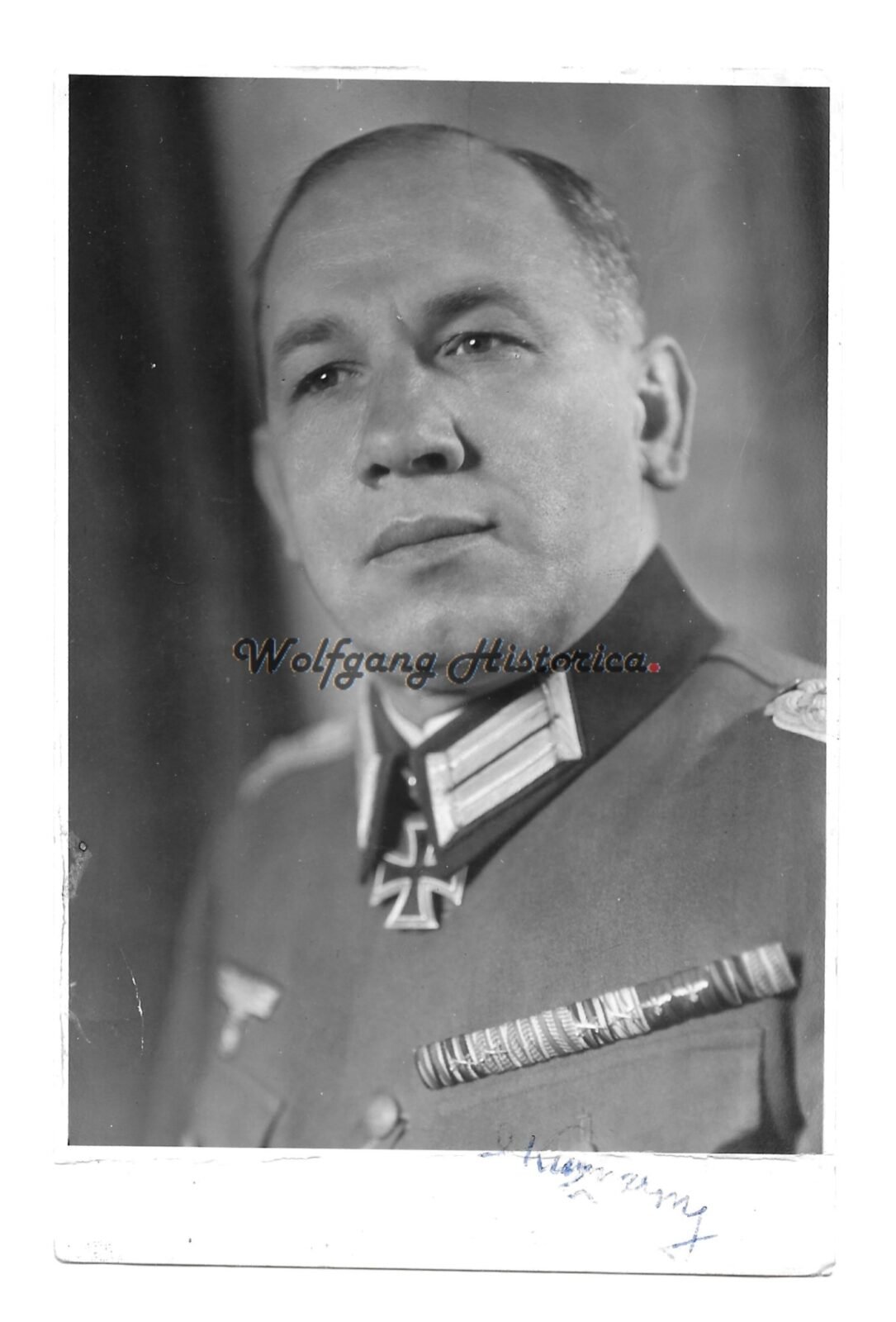 Original Wartime Photograph with Postwar Signature of Alfred Kuzmany. Generalmajor Alfred Kuzmany (24.10.1893 † 04.10.1961) earned the Ritterkreuz on February 2, 1942 as Oberstleutnant und Kommandeur of Infanterie-Regiment 338. Good condition, signature of front was done by ball pin, so not that beautiful signature. Bit larger as Postcardsize.