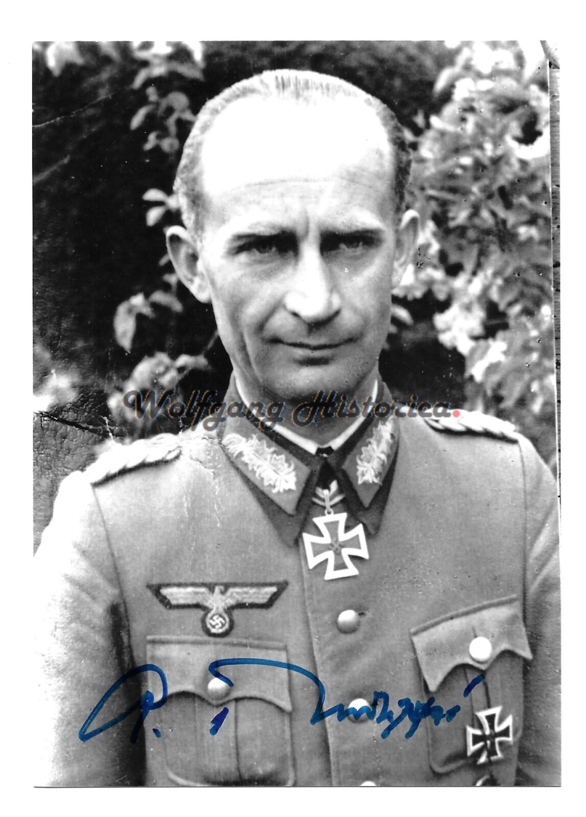 Original Postwar Signature on a Postwar Photo of Alfred Philippi. Generalmajor Alfred Philippi (03.08.1903 † 15.06.1994) earned the Ritterkreuz on May 14, 1944 as Oberst und Kommandeur of Grenadier-Regiment 535. Good condition. Postcardsize.