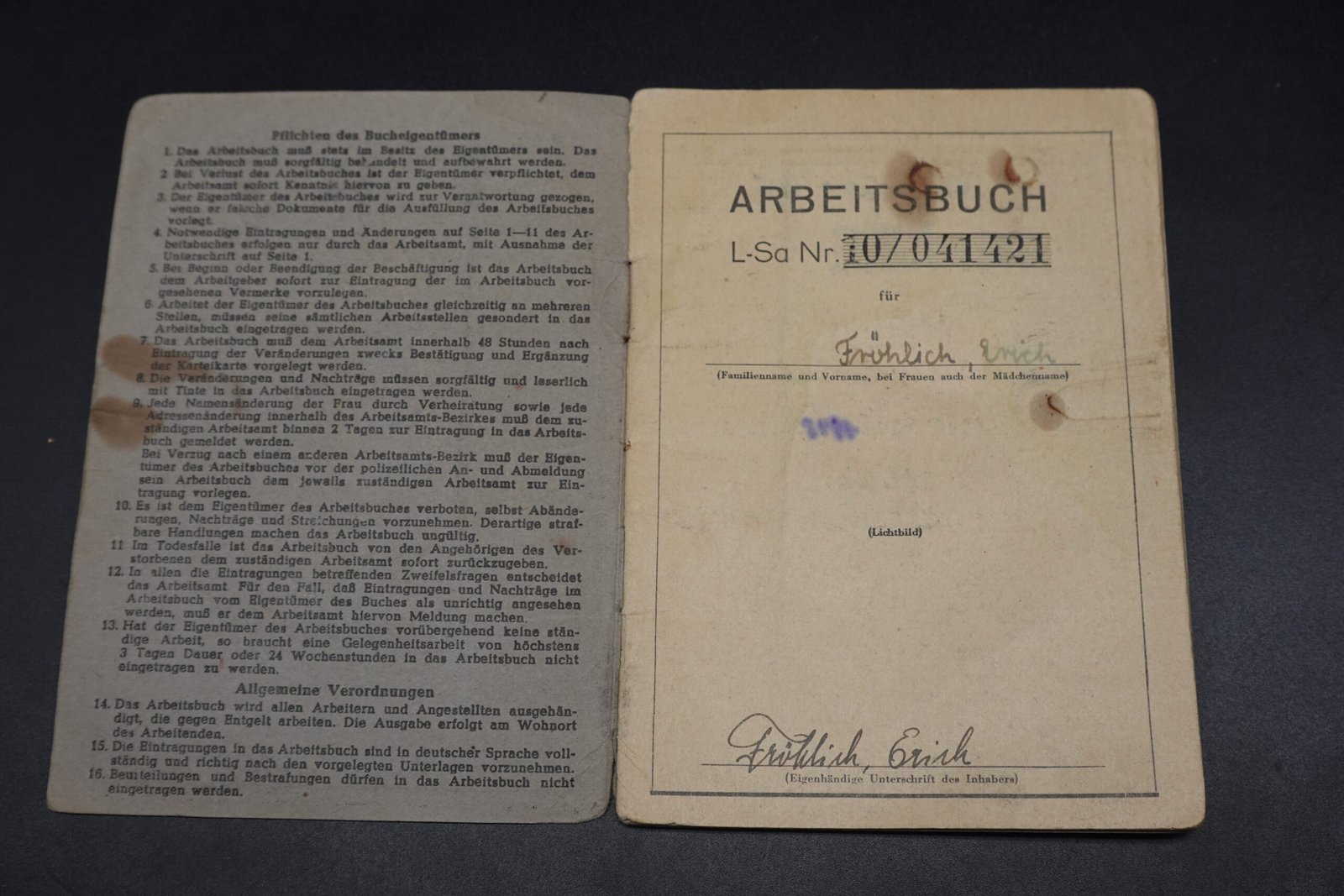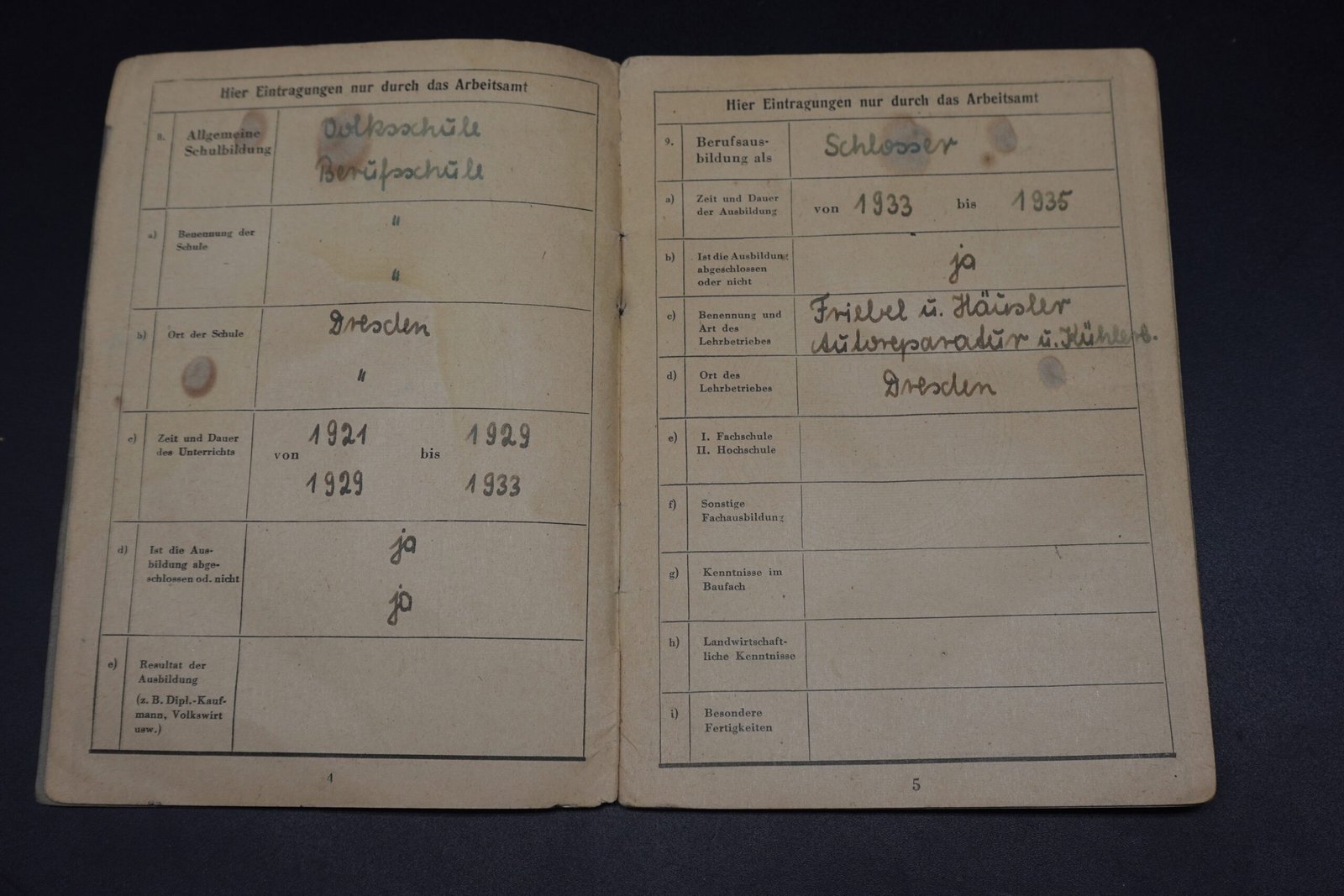 Original Arbeitsbuch – Dresden (1947-1955). Condition as seen.