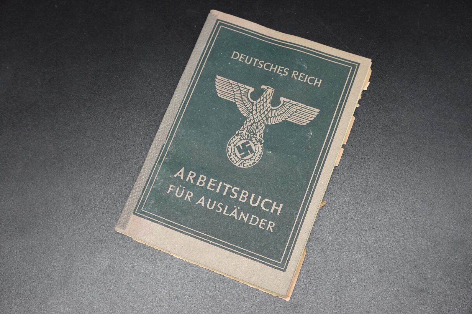 Original Arbeitsbuch für Ausländer (Work book for Foreigners) of the Third Reich for a French man (born in France) and working in Gelsenkirchen 1944-45. Condition as seen.