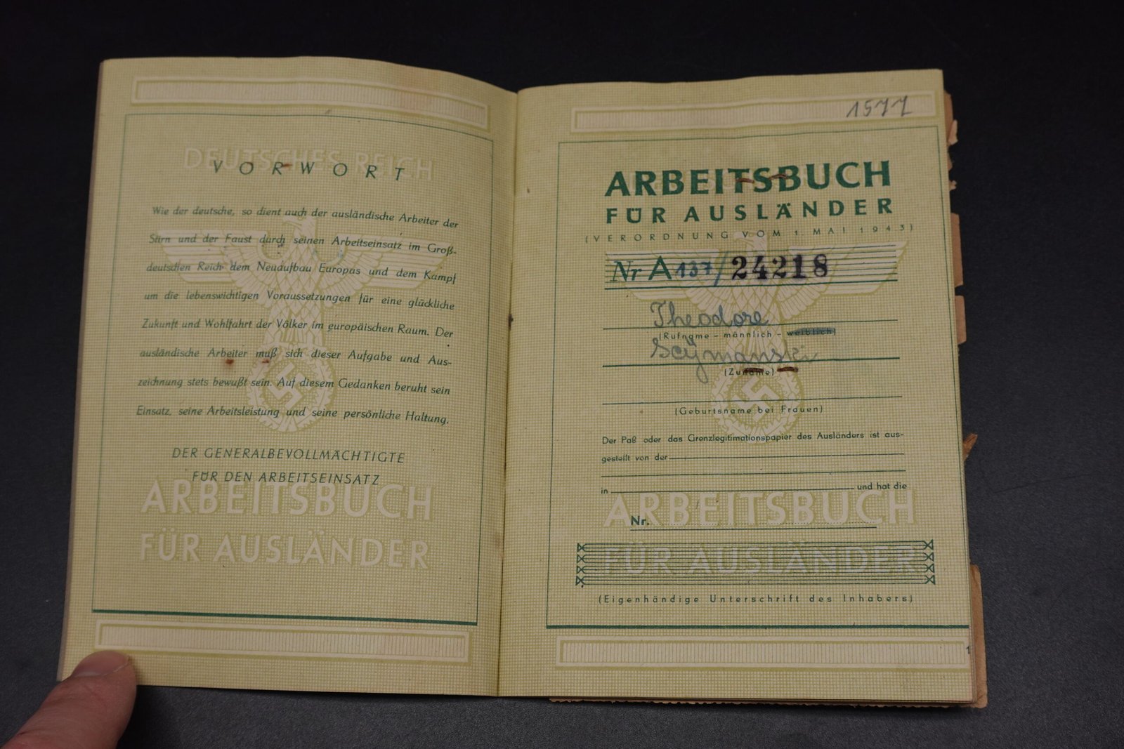 Arbeitsbuch für Ausländer (French, Working in Gelsenkirchen 1944-45)