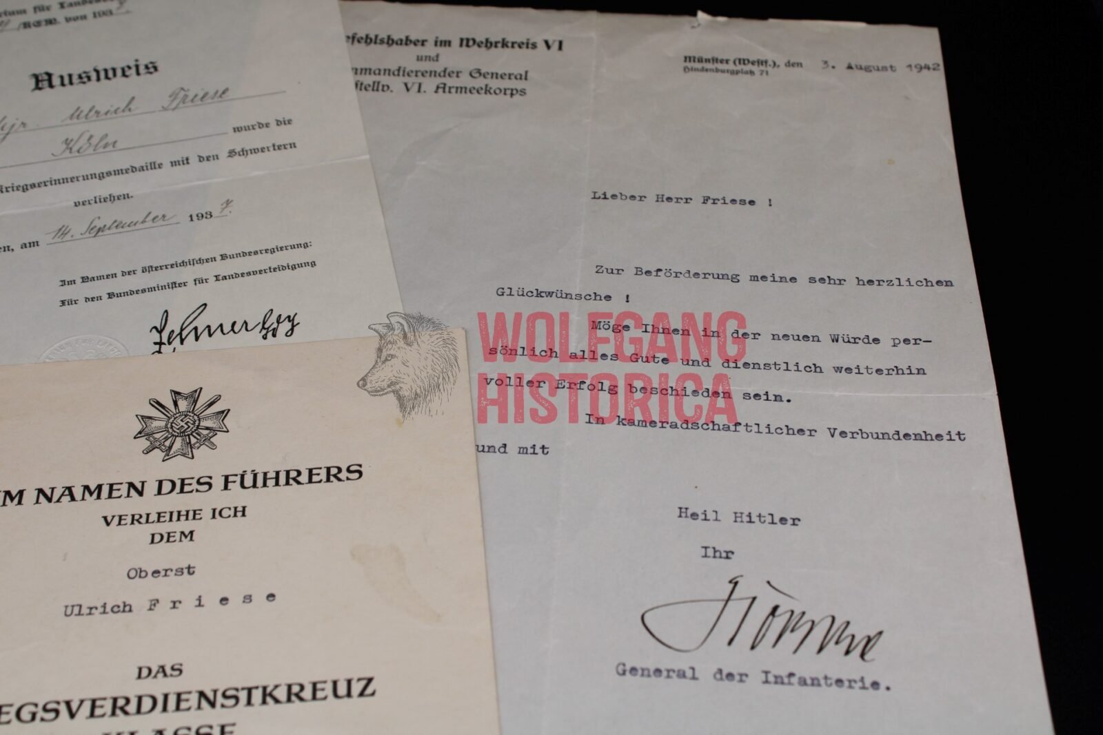 Award Document set of Oberst Ulrich Friese (3x Awards & 1x Congratz Document)