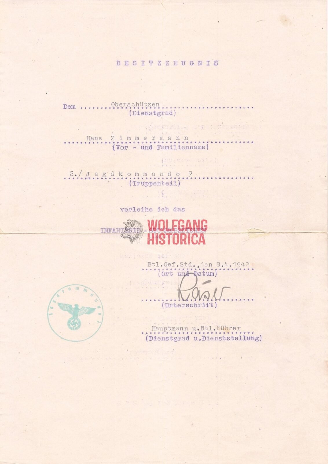 - Document stating all of his awards! Including the Nahkampfspange & Panzervernichtungsabzeichen!
