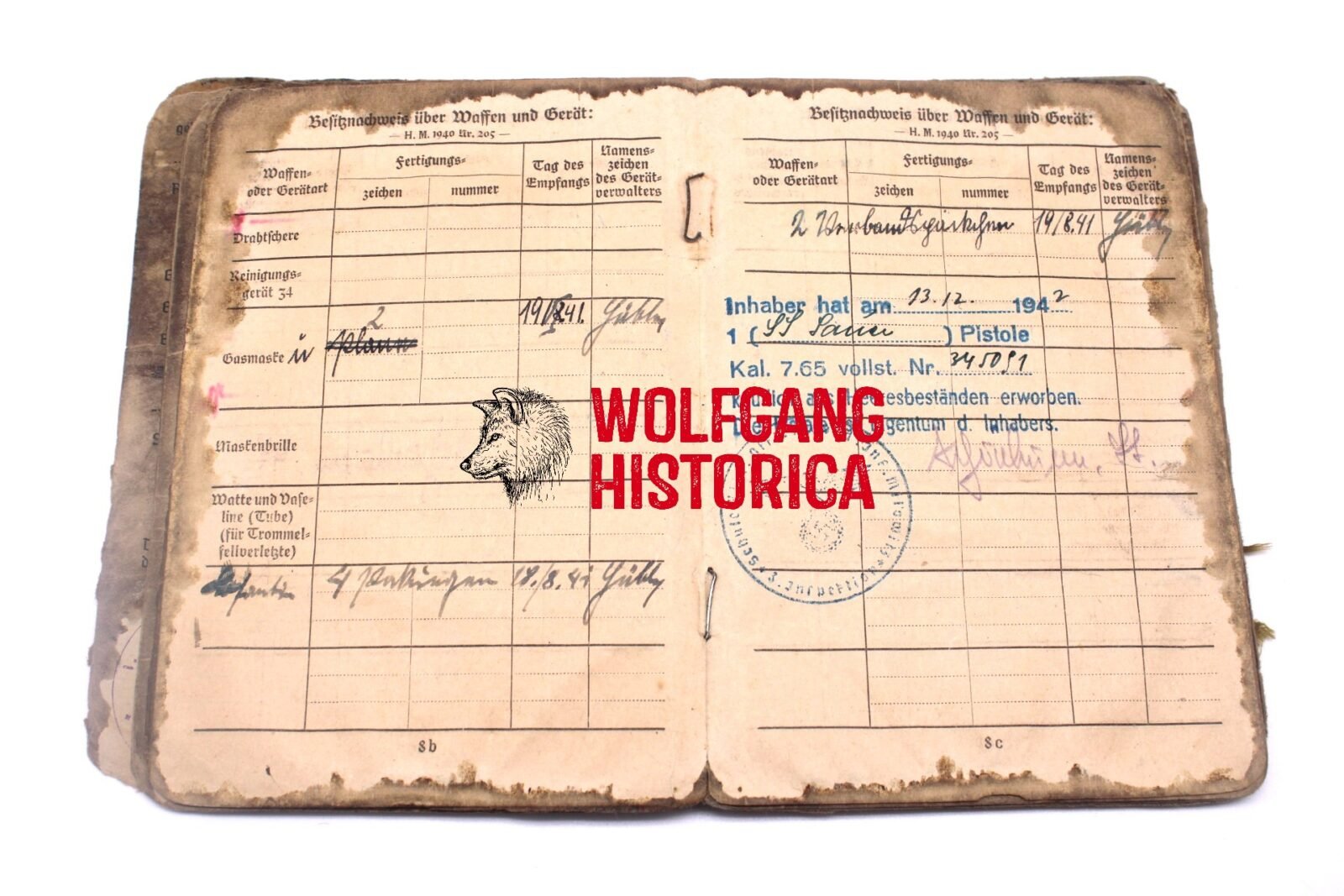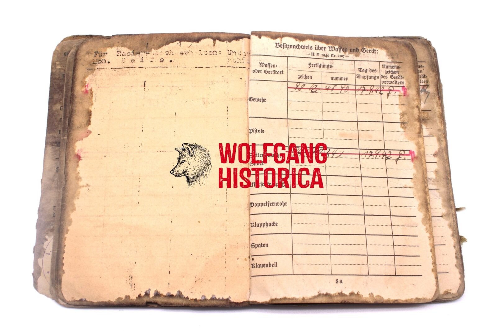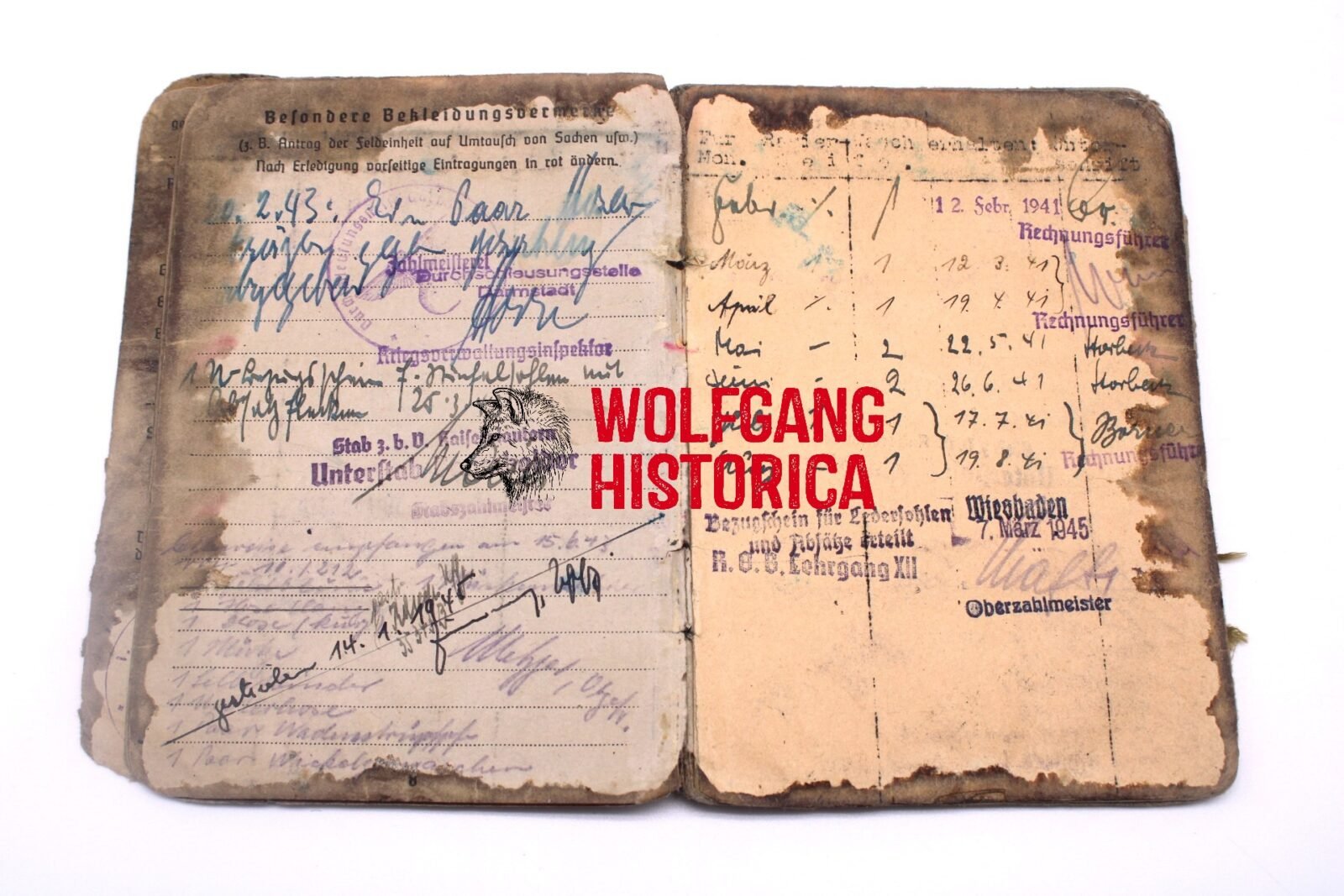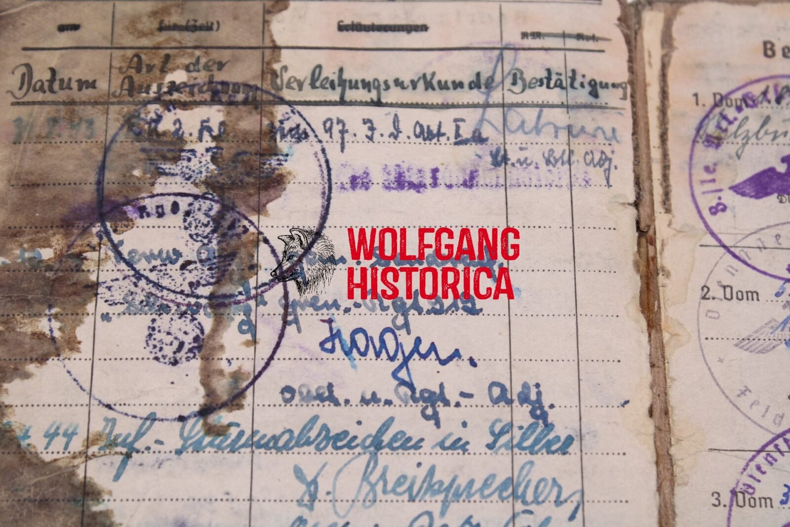 Original Blood-Soaked Soldbuch of Leutnant Kurt Franz Forsthuber, born on August 30, 1921 in xxxx. The Soldbuch was opened on October 15, 1943. He wore the Erkennungsmarke: -5067- 3.le.Art.Ers.Abt.