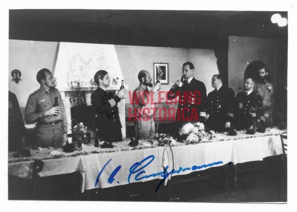 Original Postwar Signature on a Postwar Photo of Carl-August Landfermann. Käpitanleutnant (Ing.) Carl-August Landfermann (14.07.1914 † 18.11.2003) earned the Ritterkreuz on October 27, 1943 as Oberleutnant (Ing.) und Leitender Ingenieur of Uboot “U-181”. Good condition. Postcardsize.