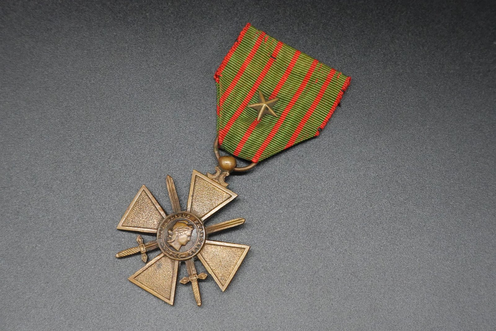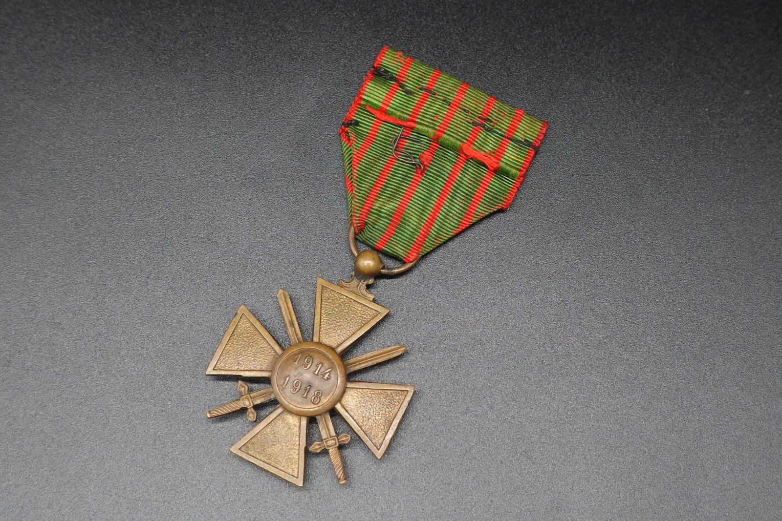 Original French Croix de Guerre 1914–1918 + Bronze Star on the ribbon. The Croix de Guerre 1914–1918 is one of France’s most iconic military decorations, established on 2 April 1915 to recognize acts of bravery and citations in dispatches during the First World War.