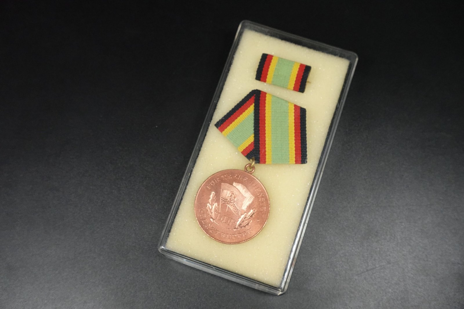 The Medal for Faithful Service in the Border Troops of the GDR (Bronze – 5 Years) is an official decoration of the former German Democratic Republic (DDR), awarded to members of the Grenztruppen in recognition of dedicated service.