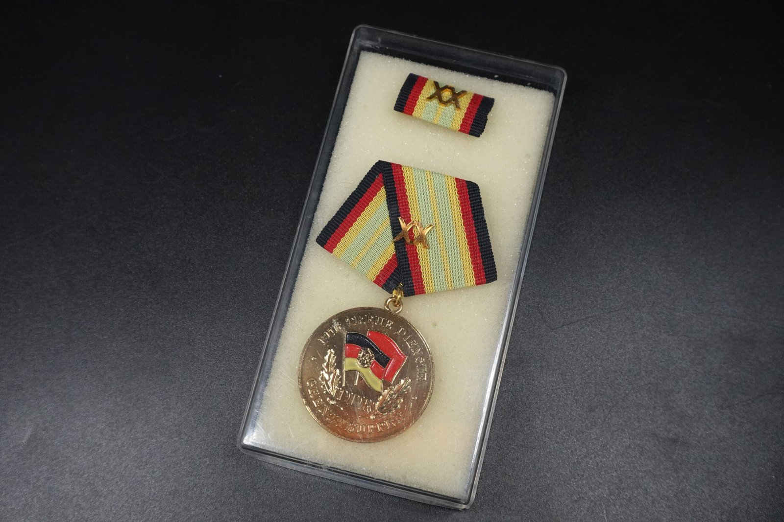 The Medal for Faithful Service in the Border Troops of the GDR (Gold – 20 Years) is an official decoration of the former German Democratic Republic (DDR), awarded to members of the Grenztruppen in recognition of long and dedicated service.