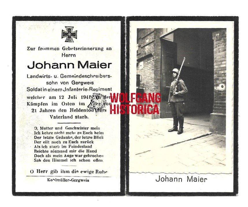 Death Card of a soldier killed in the Eastern front, but with an original photo pasted onto the card! Condition as seen.