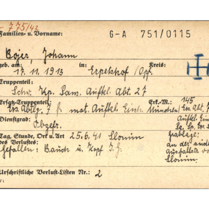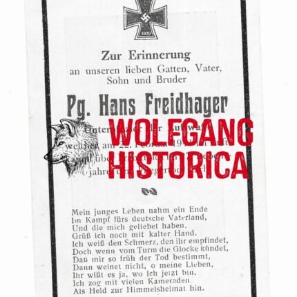 Original Death Card (“Sterbebild”) of a Gebirgsjäger, who served with a Gebirgsjäger-Regiment. Condition as seen.