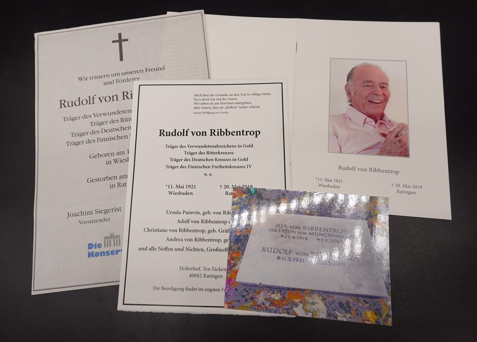 Original set of a Rudolf von Ribbentrop’s death card, letter(s) and photo of his grave.