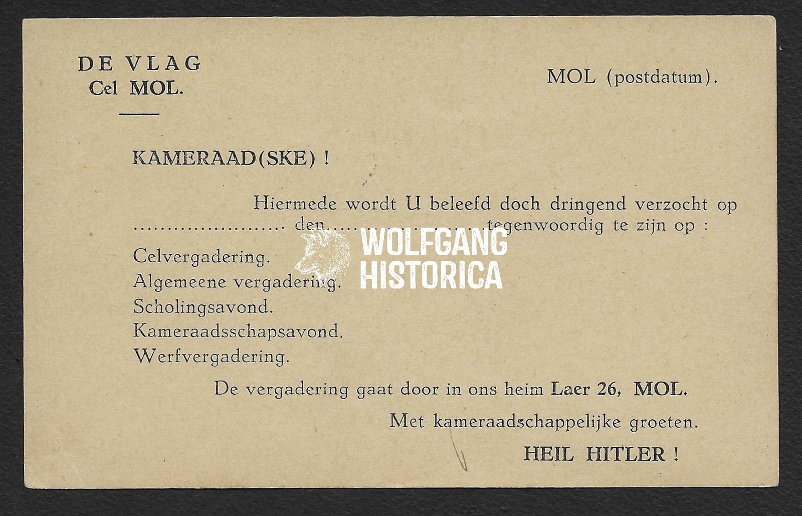 Original DeVlag inviation for Cel Mol with some writing on the backside (from resistance?).