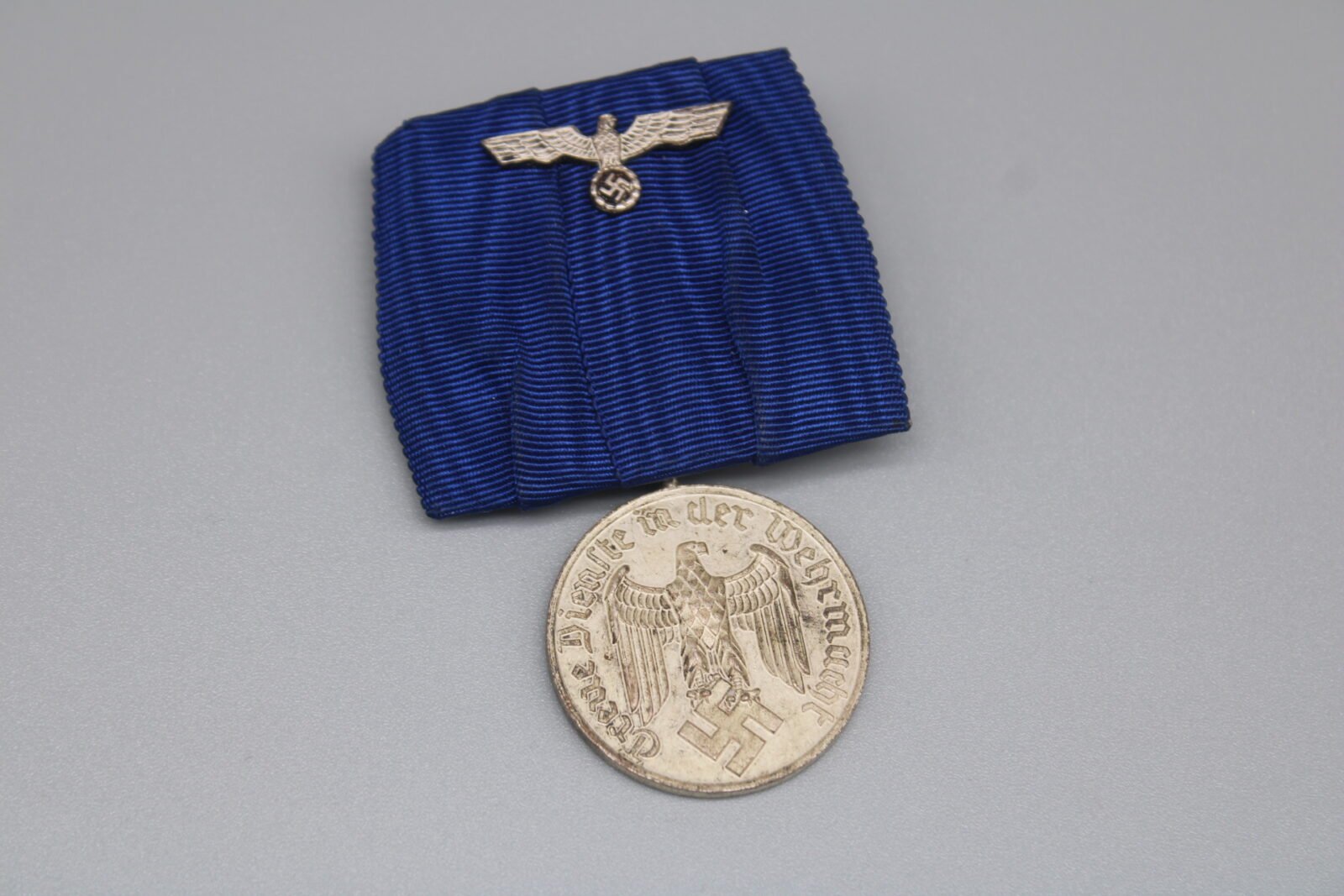 Original Wehrmacht Dienstauszeichnung für 4 Jahre (4 Years of Service Award) mounted on a ‘Einzelspange‘. Good condition.